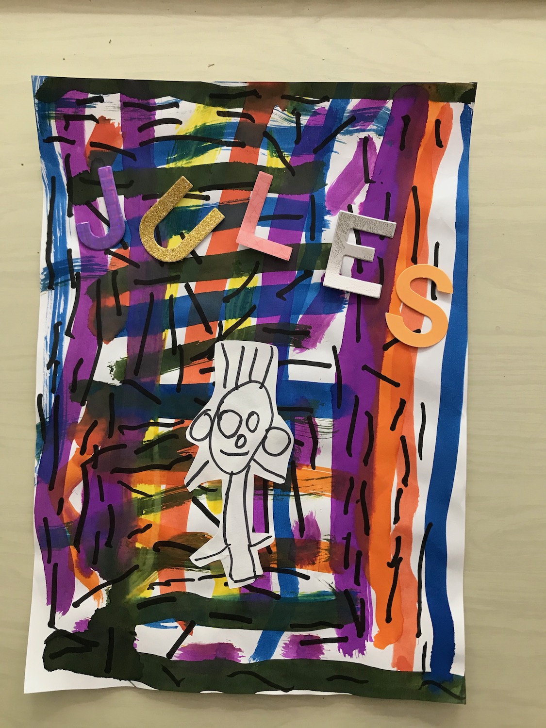 Je le travaille en lien avec des artistes, des œuvres ou de manière décorative (faire un fond, un cadre …). Chaque année, je pars de ma progression et selon mon envie ou ma découverte du moment ou des échanges avec des collègues, je travaille à partir d’un ou plusieurs artistes pour développer chaque geste graphique.