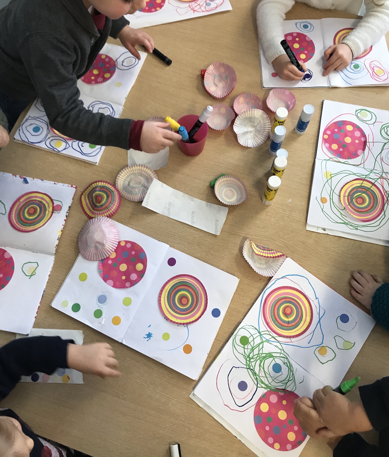 Une année de graphisme décoratif et art pour les PS, et de graphisme décoratif pour les MS-GS… Je change mes programmations chaque année, en fonction des projets, des rencontres d’artistes, des humeurs …