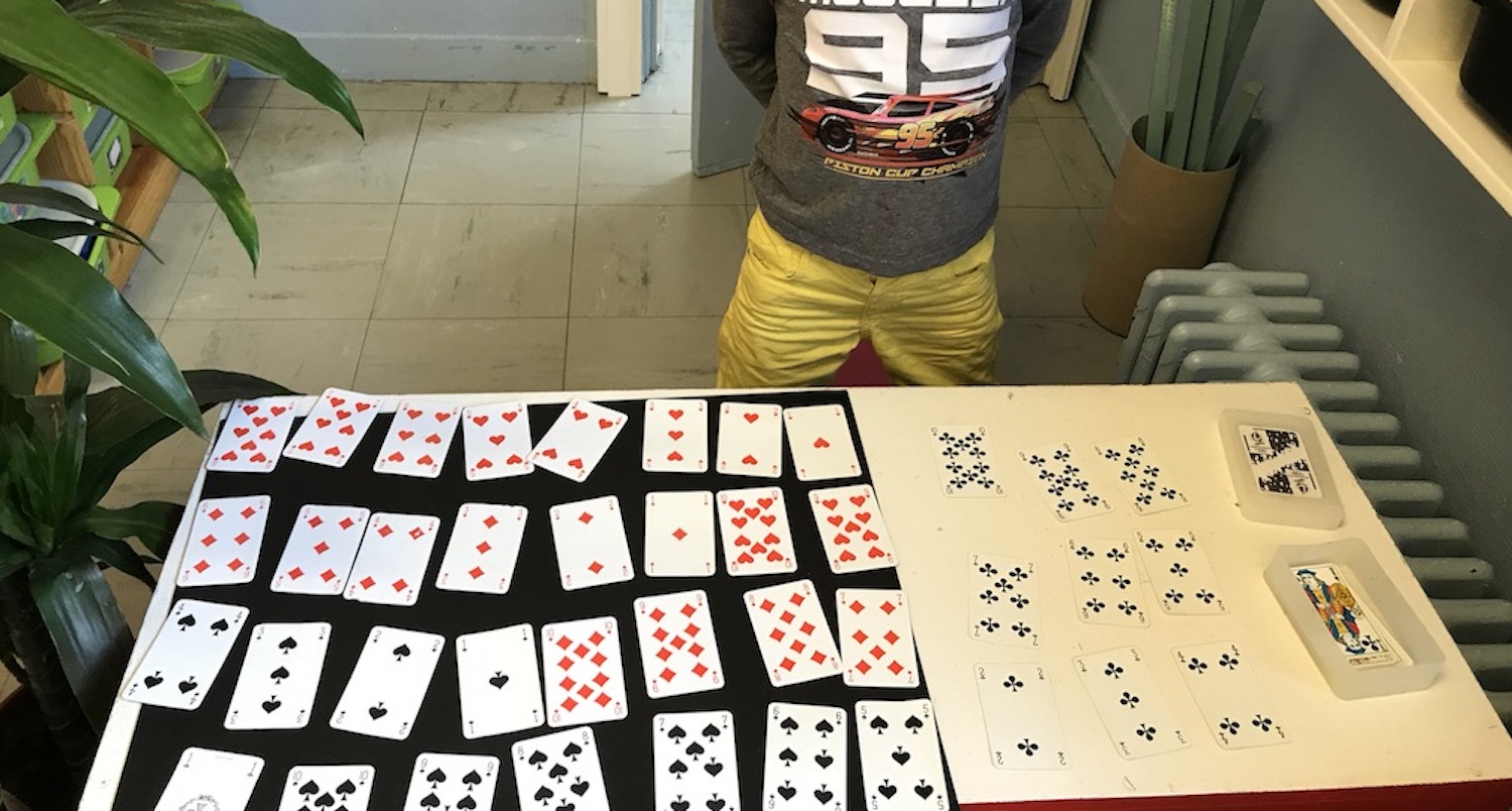 Si je demande 4 caisses pour le camion, l’enfant doit prendre la carte 3 et 1 ou deux cartes 2.