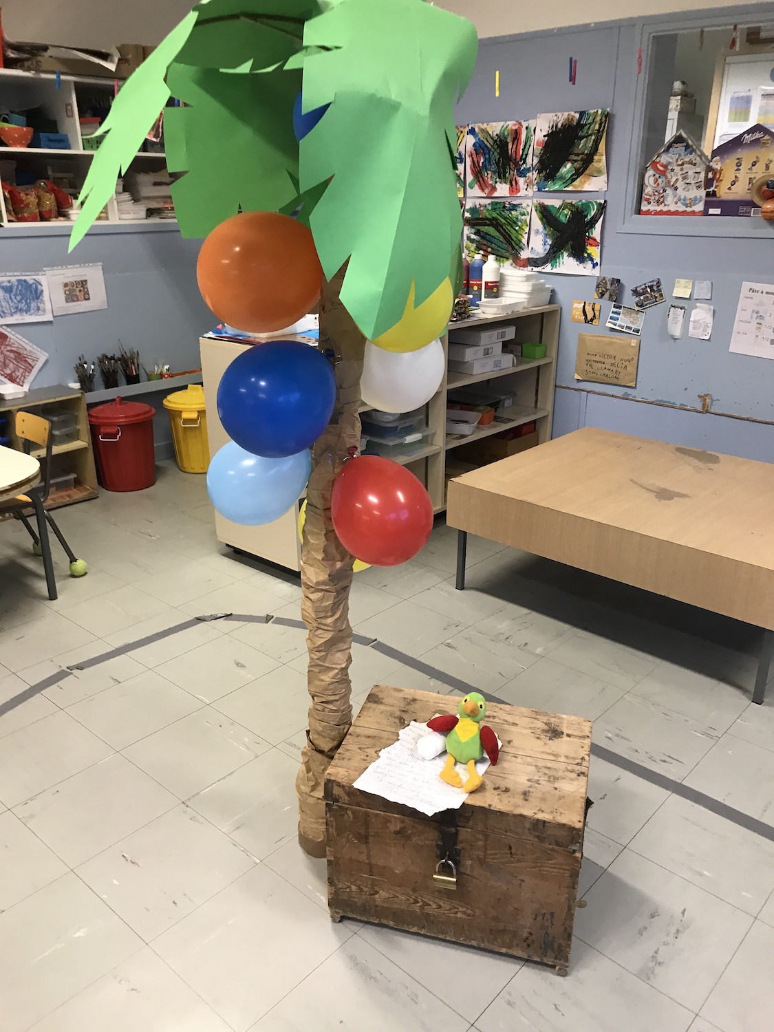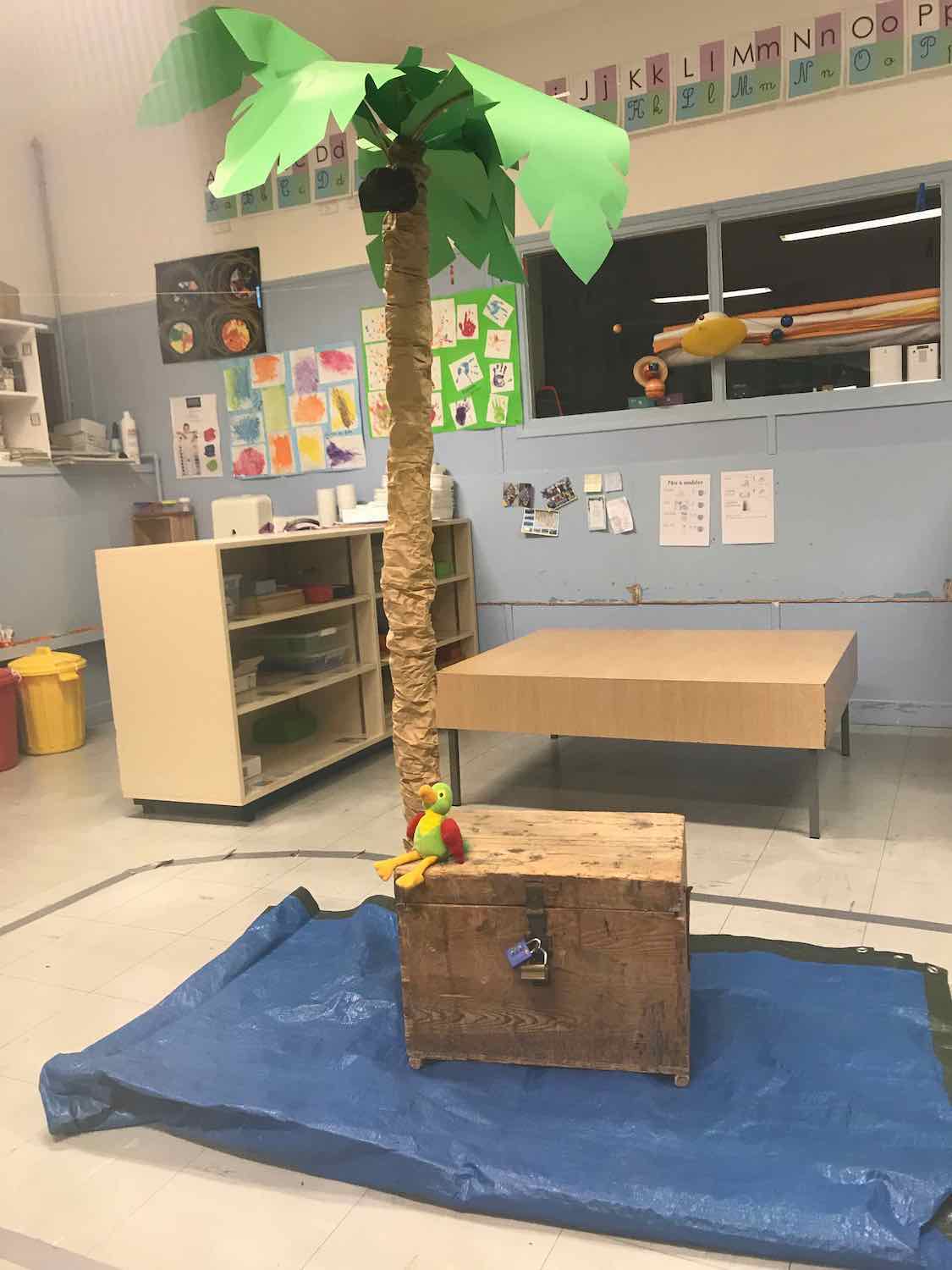 Tout au long de l’année, ce pirate nous a accompagnés dans les différents apprentissages : résoudre des énigmes pour ouvrir un coffre, encoder pour lui laisser un message, découvrir les continents, les mers, chercher comment fabriquer un bateau pour atteindre son île, utiliser le lexique spatial pour décrire son île et terminer par une grande chasse au trésor dans un village entier avec indices à trouver et coffre à ouvrir.