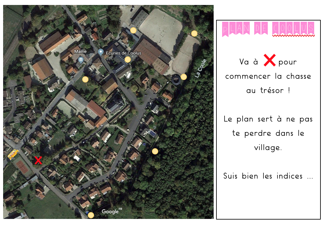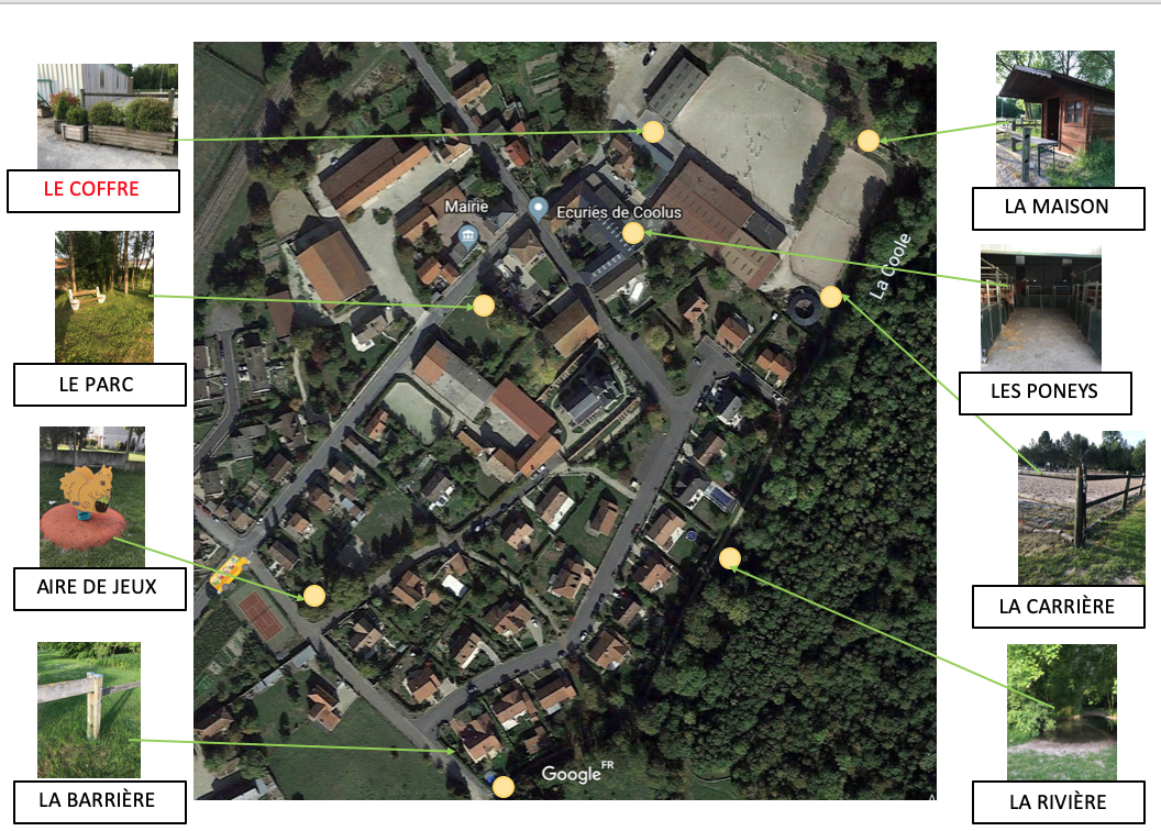 Chaque équipe (de la PS à au CP) reçoit un plan avec une croix puis une énigme et une photo pour les plus jeunes. Arrivée à ce point, elle reçoit une nouvelle énigme et une nouvelle photo … jusqu’à avoir visité tous les lieux (l’adulte accompagnant a le plan du village avec toutes les balises à trouver).